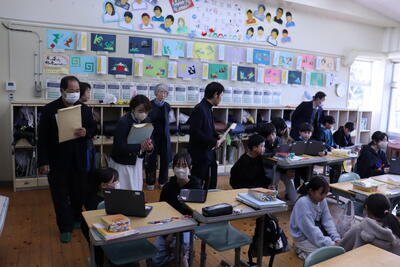 また、多くの子供たちが学習活動でタブレットを巧みに使っている様子にも感心されていました。子供たちの学習効果をさらに上げるためにも、タブレットを活用しての学習にもますます取り組んでいかねばと思ったところでした。