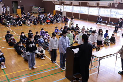 22日(木)に持久走大会を行いました。今シーズン最強寒波の影響でかなりの冷え込みの中での開催でした。子供たちの健康面への配慮から、開会式や閉会式は体育館で行い、途中の応援も体育館や学年棟から応援する形に変更しての実施となりました。