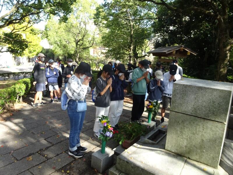 平和学習では、被爆者体験講話を真剣な表情で聞き、自分たちが学習してきたことと重ね合わせながら、当時の様子を肌で感じていました。平和公園で平和集会を行い、原爆の地を回り、学習を深めました。2日目はハウステンボスでの班活動でした。休日ではありましたが、アトラクションにも乗れ、友達と楽しい時間を過ごすことができました。