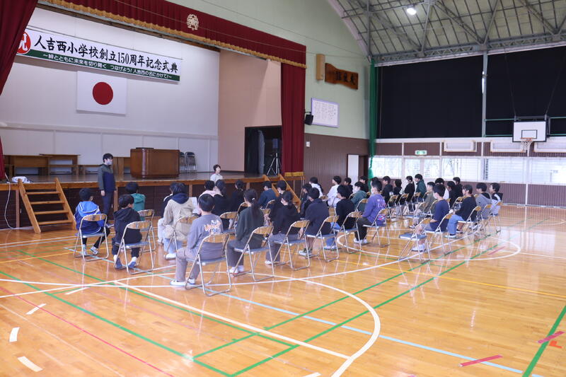 また、6月4日(水)は、いよいよ「150周年の人文字撮影」を運動場で行います。前日には、お隣の球磨工業高校の生徒さん達が、人文字の測量とライン引きを行ってくださいます。授業の一環で行っていただくということにも感謝の気持ちでいっぱいです。