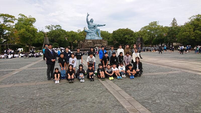 1日目の平和学習では、まず平和公園で平和集会を行い、全校生徒の平和へのメッセージが書かれた折り鶴を奉納しました。その後は、被爆者体験講話を聞いたり、長崎原爆資料館や原爆の地を見学したりして学習を深めました。子どもたちは、想像以上の原爆や戦争の恐ろしさを知り、平和の大切さを改めて感じることができました。