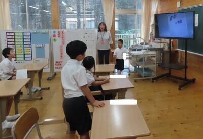 24日 4年生と6年生が理科と外国語科の研究授業を行いました。専科の先生としっかりと学んでいます。