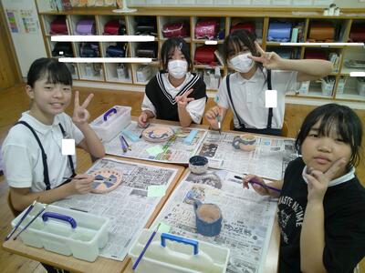 16日作陶体験 6年生が森山陶器さんに絵付けをおしえてもらいました。