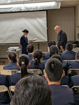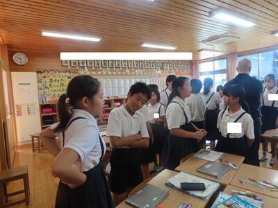 3年生が石工の唄を作曲されたファズさんに歌唱指導していただきました。高い音の出し方、気持ちを込めた歌い方など多くのことを教わりました。また、一段とレベルアップした3年生でした。