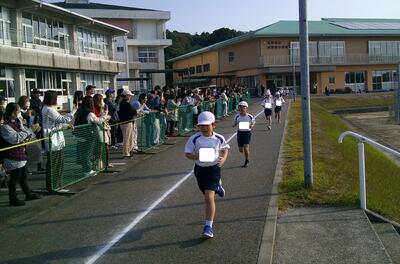 2学期持久走大会と1年生昔遊びの様子です。保護者地域の皆様の応援、老人会の皆様に本当に感謝しています。