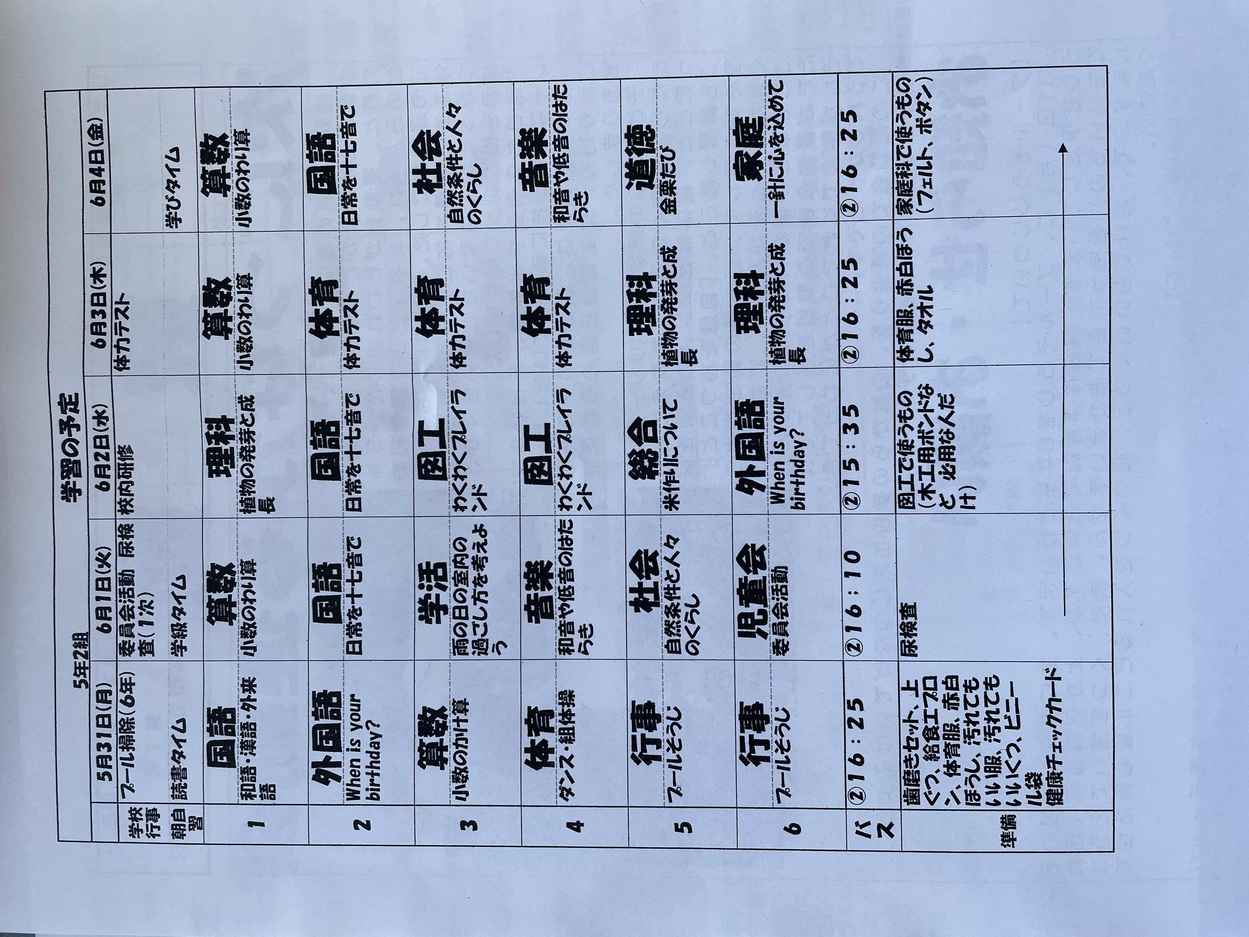 5月31日~6月4日までの時間割 投稿日時 : 2021/05/31 学校サイト管理者 1年1組.JPG 1年2組.JPG 2年1組.JPG 3年1組.JPG 4年1組.JPG 5年1組.JPG 5年2組.JPG 6年1組.JPG の1組1年.JPG の1組3年.JPG の1組5・6年.JPG の2組4・5年.JPG の3組1年.JPG の3組2年.JPG の3組3年.JPG の3組5年.JPG