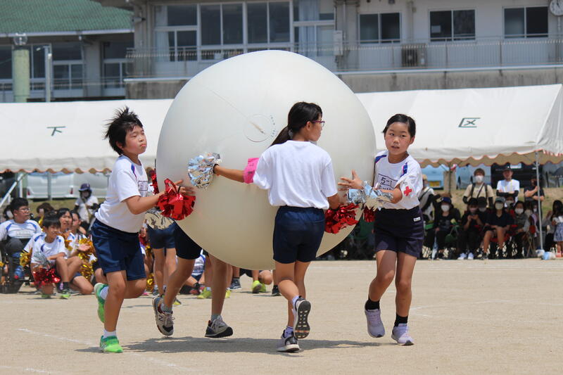 高学年団体「大玉運び」はチームワークが大切。お互いに気持ちを合わせてしっかりと運びました。