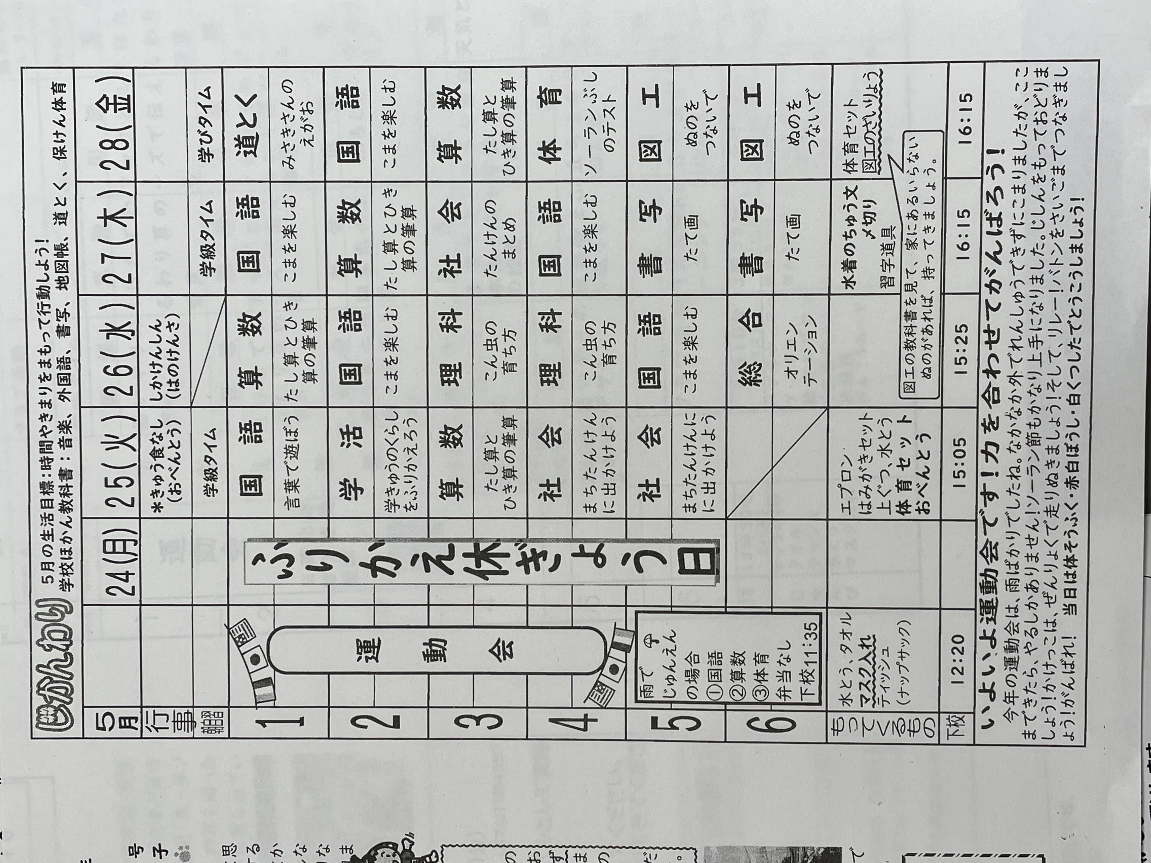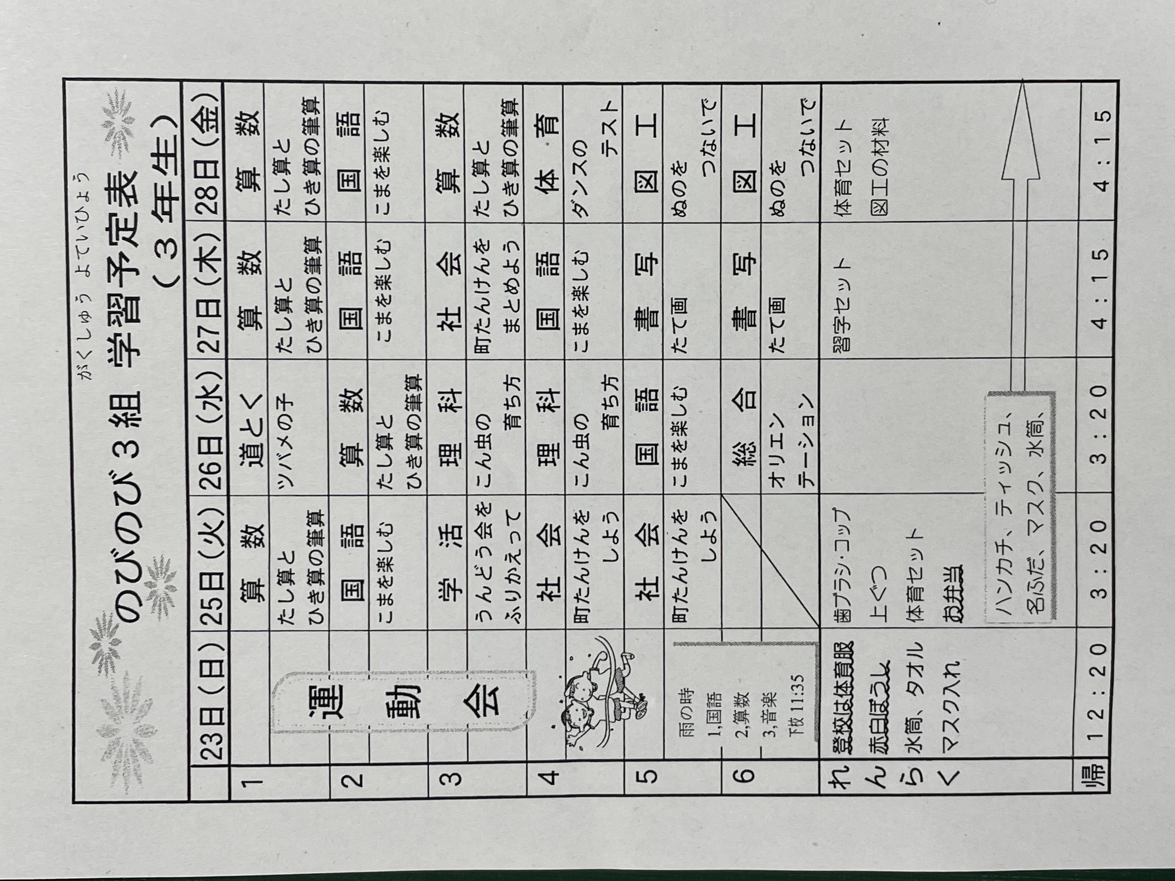 5月25日~28日までの時間割 投稿日時 : 2021/05/27 学校サイト管理者 1年1.JPG 1年2組.JPG 2年1組.JPG 3年1組.JPG 4年1組.JPG 5年1組.JPG 5年2組.JPG 6年1組.JPG の1組1年.JPG の1組3年.JPG の1組5・6年.JPG の2組4・5年.JPG の3組1年.JPG の3組2年.JPG の3組3年.JPG の3組5年.JPG