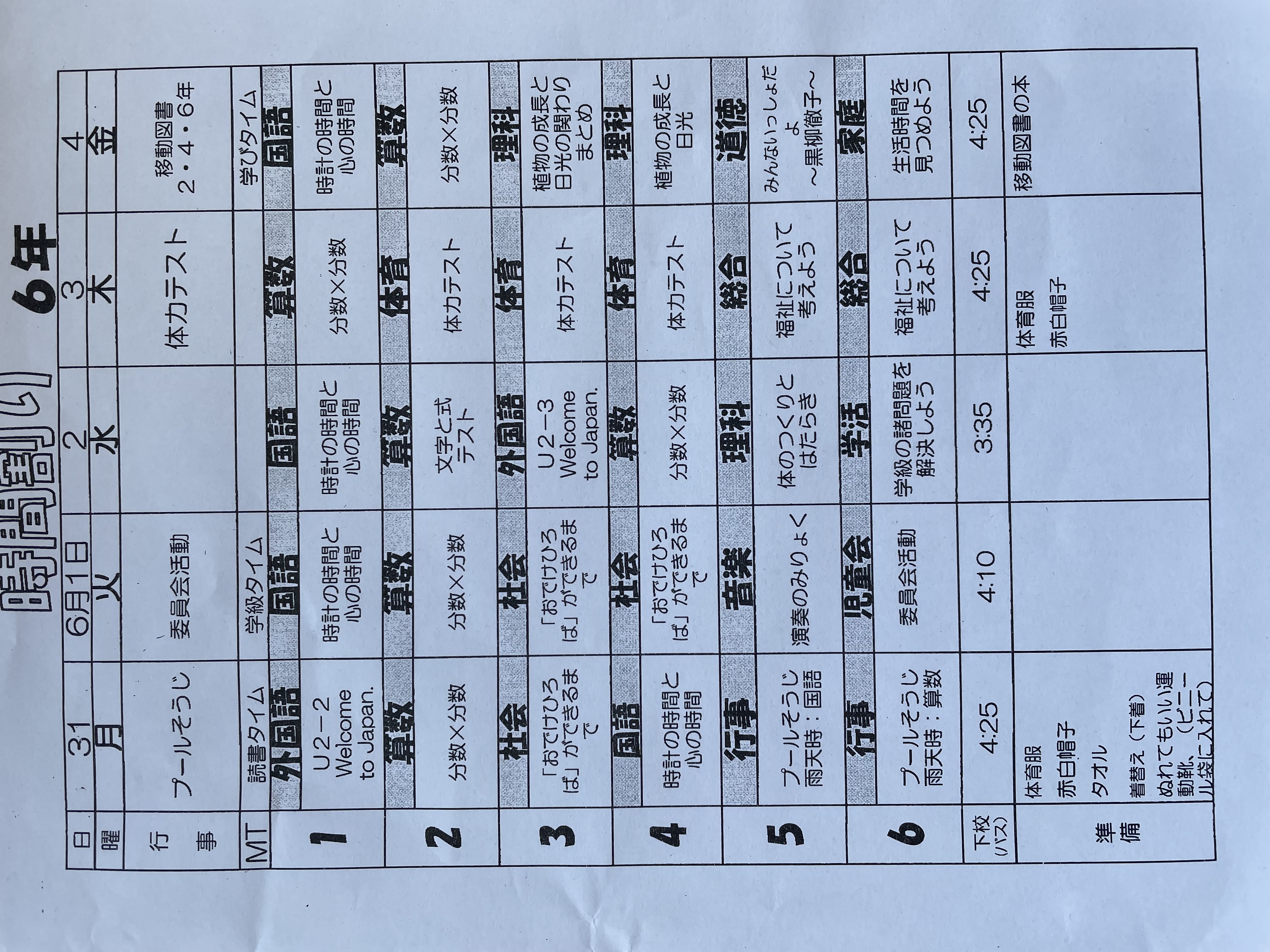 5月31日~6月4日までの時間割 投稿日時 : 2021/05/31 学校サイト管理者 1年1組.JPG 1年2組.JPG 2年1組.JPG 3年1組.JPG 4年1組.JPG 5年1組.JPG 5年2組.JPG 6年1組.JPG の1組1年.JPG の1組3年.JPG の1組5・6年.JPG の2組4・5年.JPG の3組1年.JPG の3組2年.JPG の3組3年.JPG の3組5年.JPG