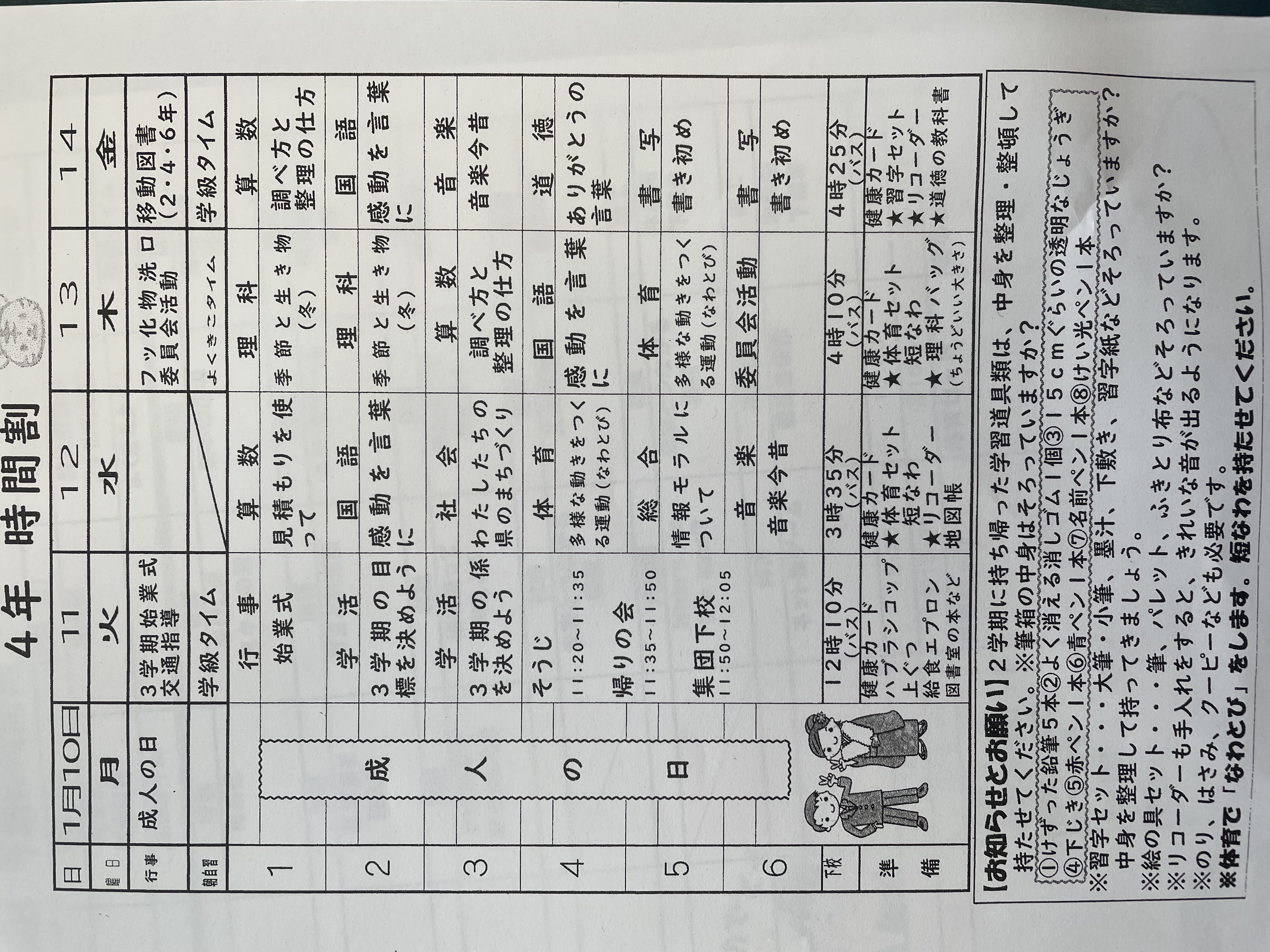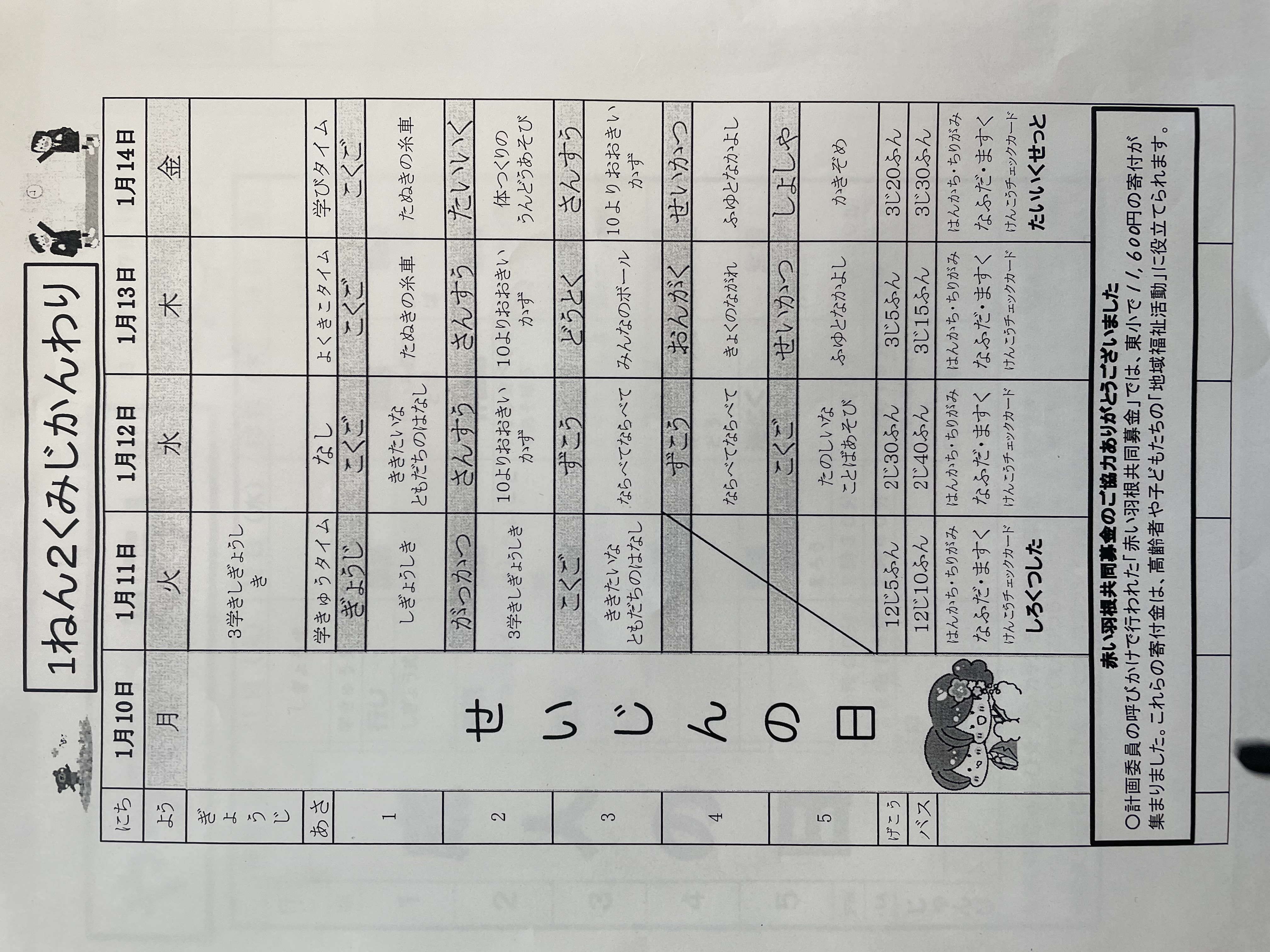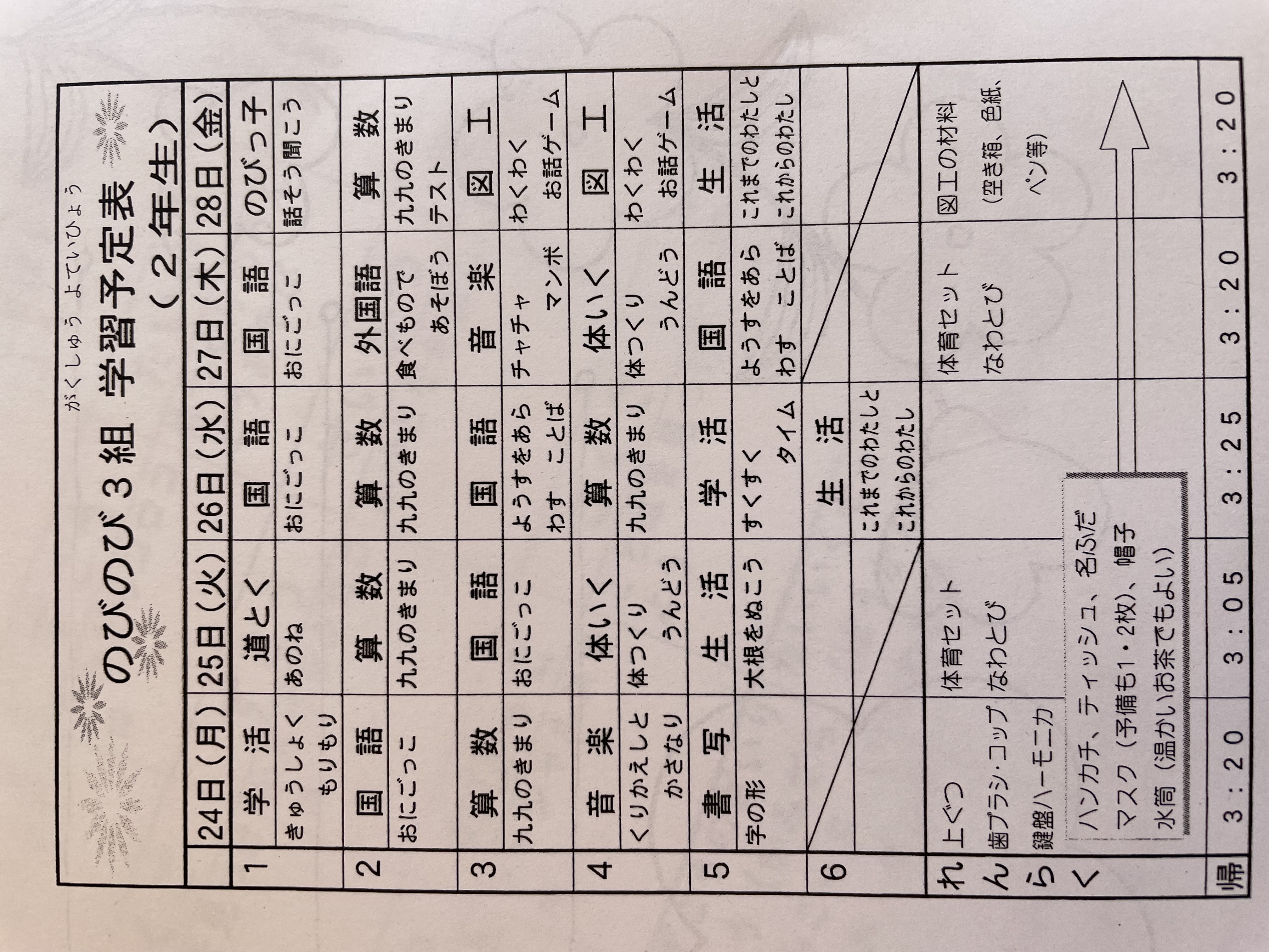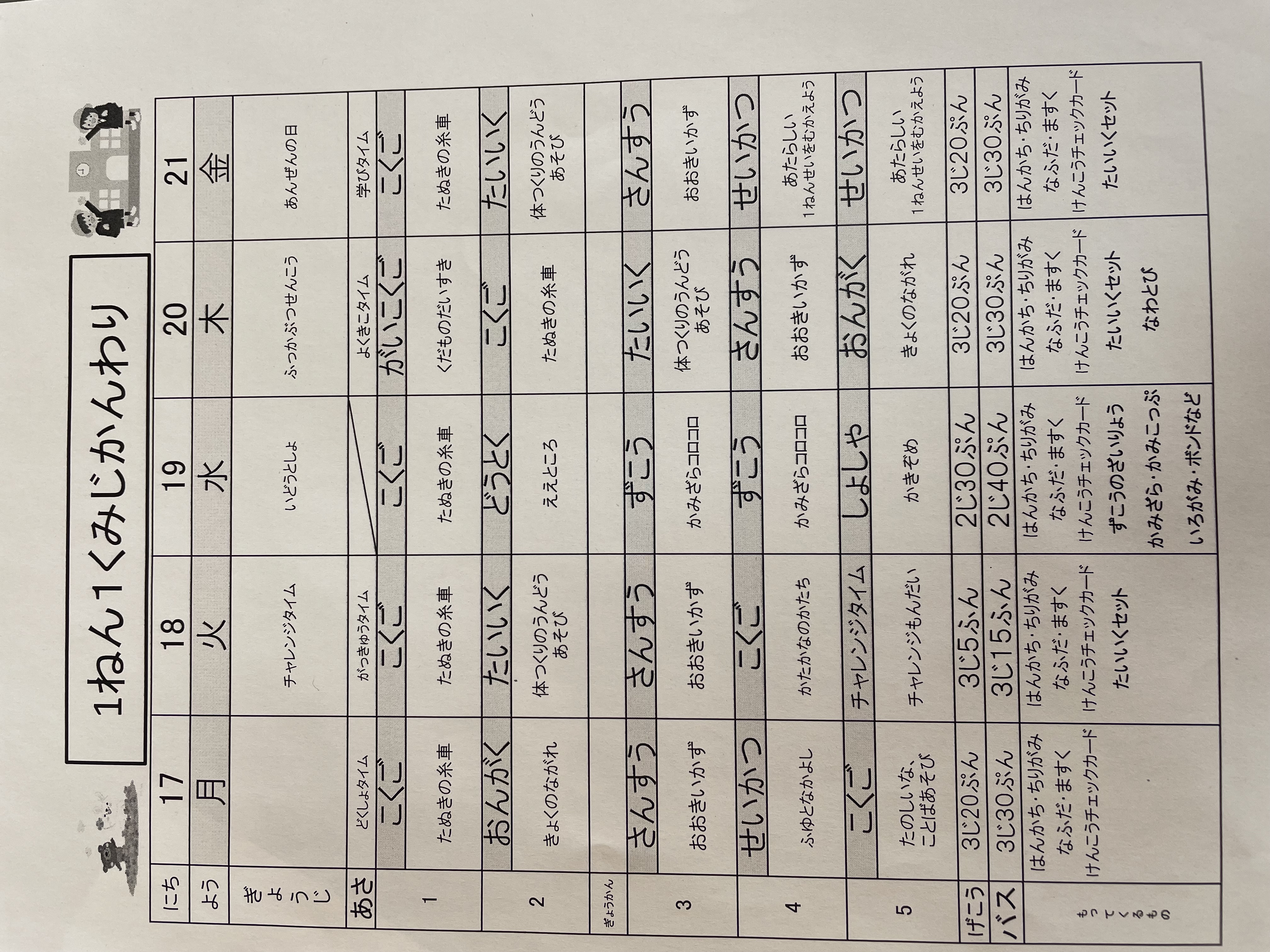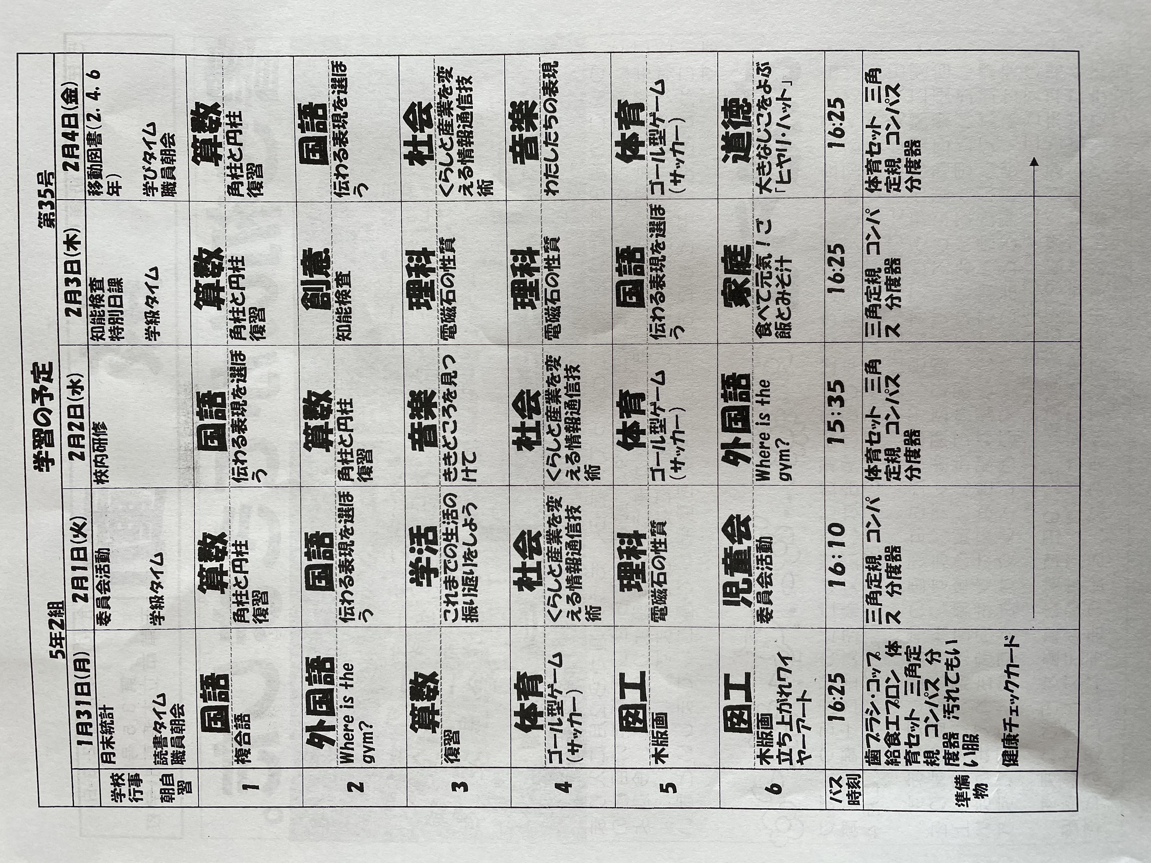 1月17日から1月21日までの時間割 投稿日時 : 2022/01/14 学校サイト管理者 1年1組.JPG 1年2組.JPG 2年1組.JPG 3年1組.JPG 4年1組.JPG 5年1組.JPG 5年2組.JPG 6年1組.JPG の1組1年.JPG の1組3年.JPG の1組5年6年.JPG の2組4年5年.JPG の3組1年.JPG の3組2年.JPG の3組3年.JPG の3組5年.JPG
