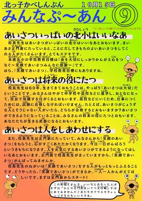 命を大切に、しましょう。勉強も生活も、しっかり考えましょう。心をつなぐ、いろいろな人と交流しましょう。そして、笑顔であいさつ、ありがとうをたくさん言える人になろうと言うことです。
