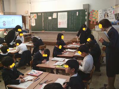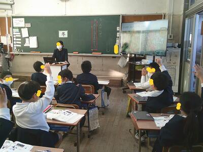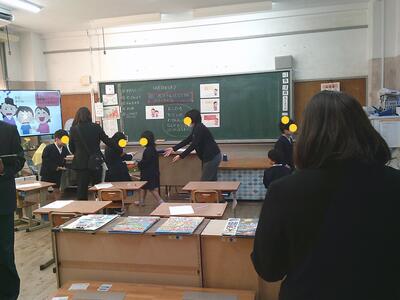 担任の先生が、訪問いただいた先生の教え子だったりして、導入クイズの解答を求められたりして、解答を間違ったりして,和やかな笑いに包まれたりして・・・。
