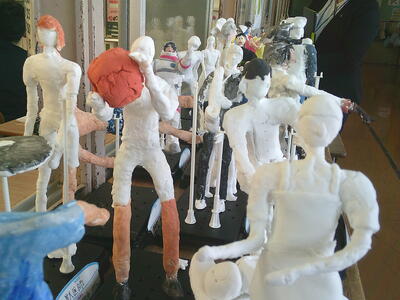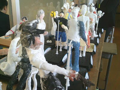6年図工、今日は作らないらしいけれど、今度から作る、紙粘土を芯に加えていく作品ですね。芯のモデルがラピュタの巨神兵。