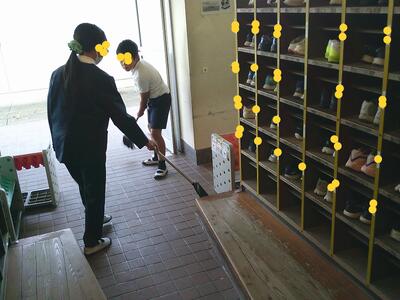 たくさんの子どもたちが、学校をきれいにするため、自分にできることをがんばっています。