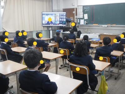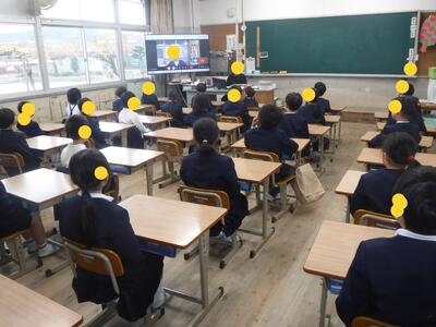 ちなみに代表で発表した子たちは、若干Wi-Fiが不安定な校長室を離れ、職員室で話を聞いていました。