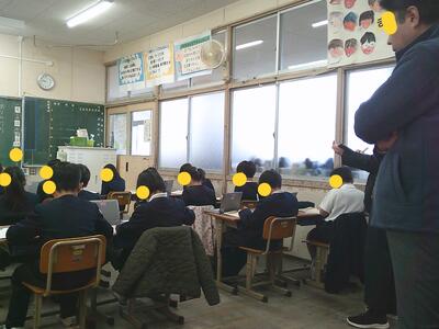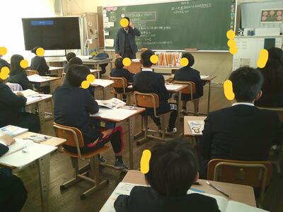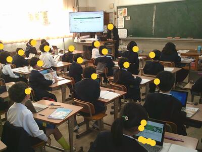 天草市教育委員会の事業で、指導主事等の先生たちが、若い先生たちの授業を参観しアドバイスをいただきます。