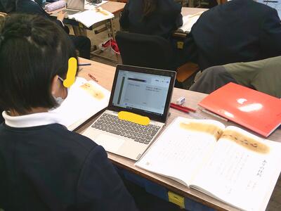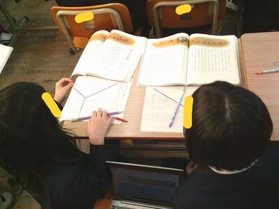一人学びが始まりました。一定時間一人学びを終えると、子どもたちはペア等で学びを深めます。日常の積み重ねを見るようです。