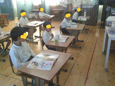 朝は読み聞かせでした。