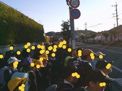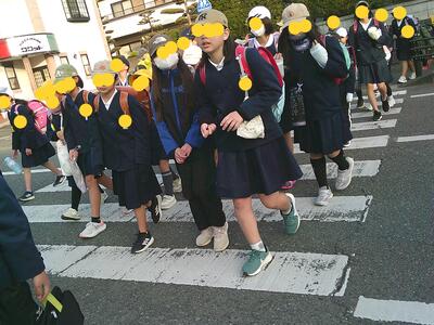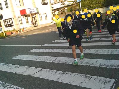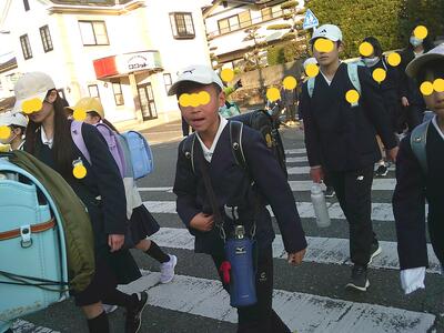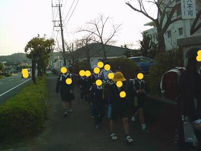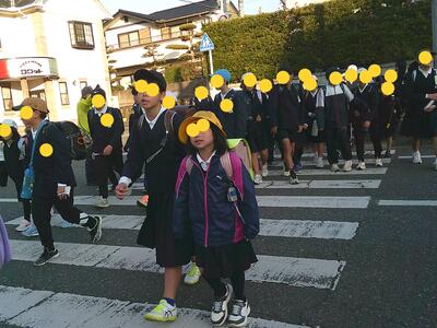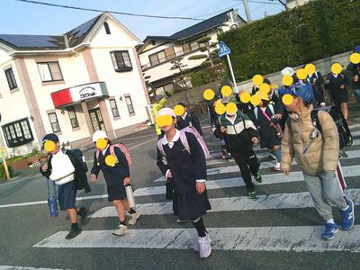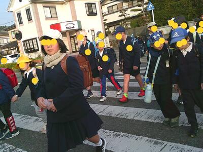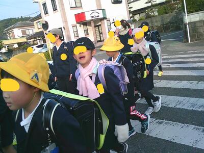 1回目の放送です。「登校班の班長は、1年生を迎えに行ってください。1年生は、登校班長と一緒に地区児童会に行ってください。」