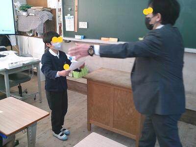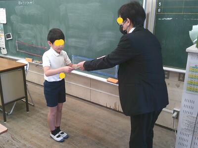 昨日の朝は、3年生と4年生の漢字計算大会ダブルパーフェクト賞表彰式で、各教室に出かけました。