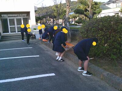 6年生からバトンを引き継いだ5年生、朝のボランティアをがんばっています。