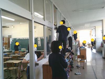 2回目の放送のあと、廊下の混雑が予想されたので、昇降口ポイントに行くと、すでに2人の先生がそこに位置していました。さすがです。