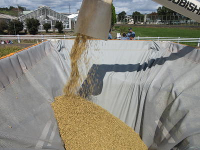 青空の下、大収穫のお米。しかし、簡単にはここまでできません。