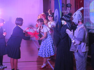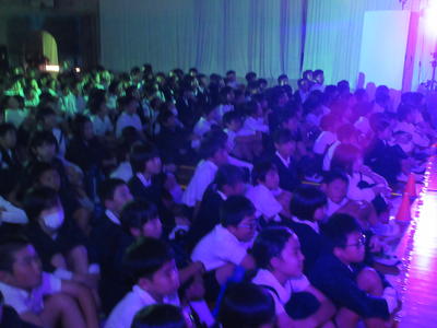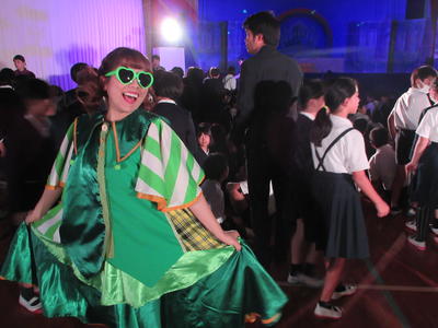 この日は観劇会でした。低学年は午前、高学年は午後から体育館でミュージカルをみたのです。