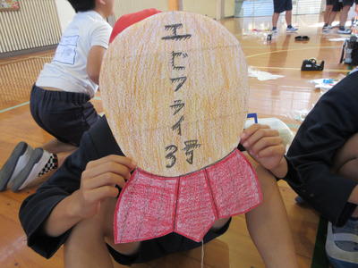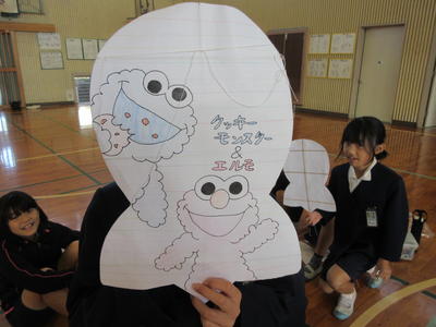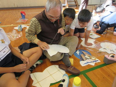 4年生が総合的な学習の時間で、昔遊びを体験しようということで、この凧作りに取り組みました。