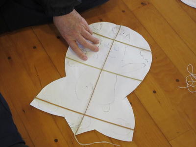 ↑↑「天草凧の会」の皆さんにご協力いただきながら、凧作りに挑戦しました。