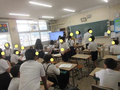 初任者研修の授業参観、教育実習の参観を兼ねているようです。がんばれ6年生。