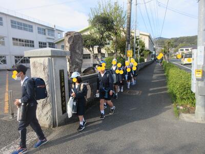 その後、6年生を除く子どもたちは下校でした。交通事故がすごく心配なので、私は下校を見守っていたのですが、私に気づいて、元気にあいさつをする姿、手を振ってくれる姿、とてもいいなあと思ってみていました。