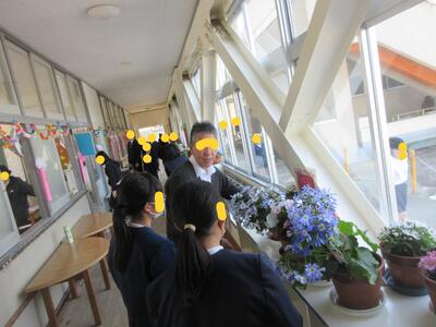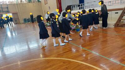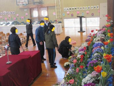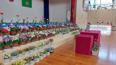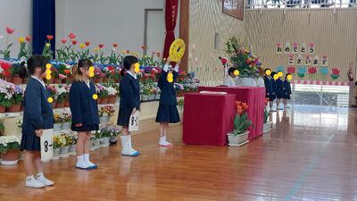 今日は入学式です。本渡北小の入学式はお花がステキな入学式です。