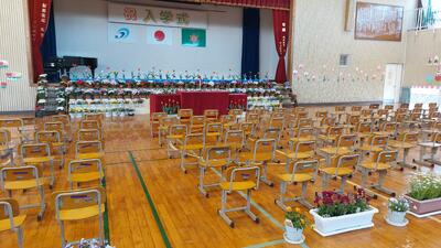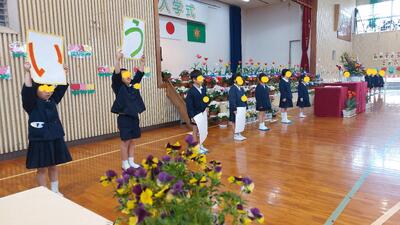 入学式です。1年生は緊張の面持ち、しかし大きな声で返事ができました。