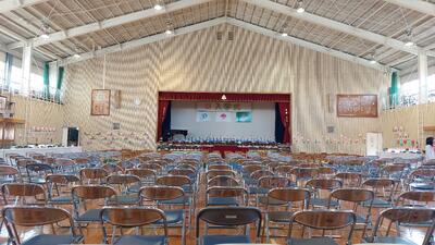 入学式後、教室の説明のあと、体育館で集合写真の撮影を行いました。