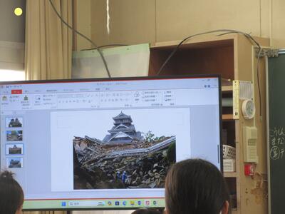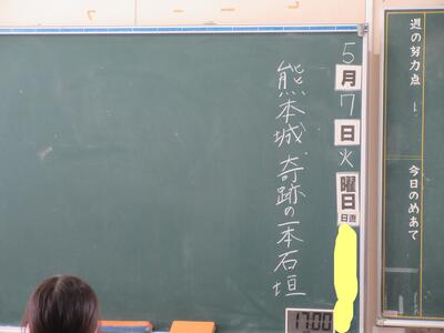 「ぼく、熊本城、連休に観に行きました」とひとりの子。