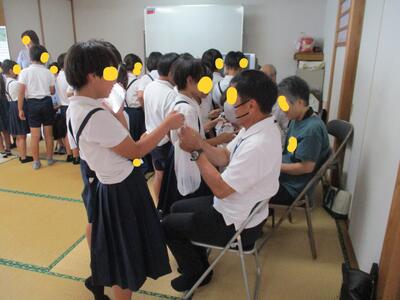 先日に続き、高齢者等疑似体験(福祉体験)教室を実施しています。