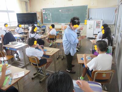 4年生は、社会福祉協議会の皆様に来ていただき、高齢者疑似体験教室を開催しました。
