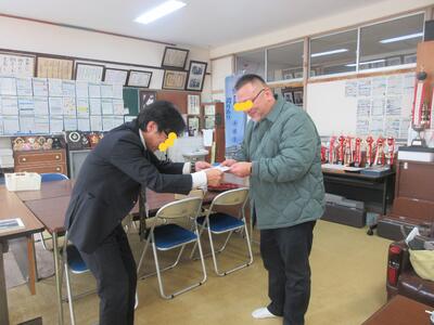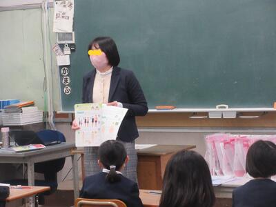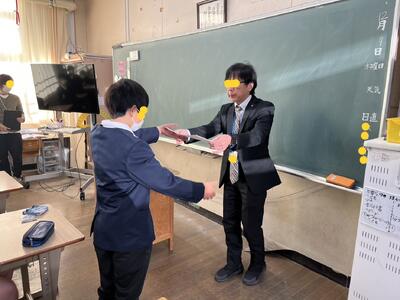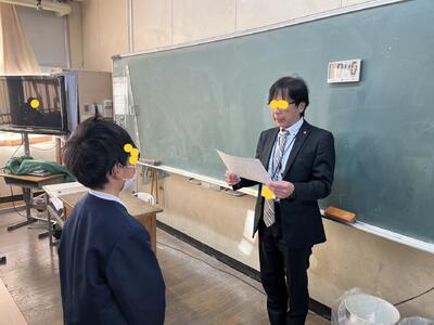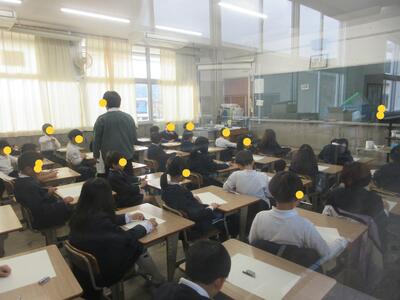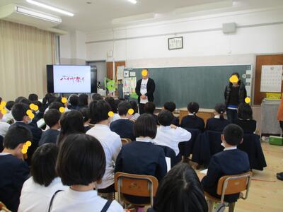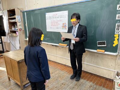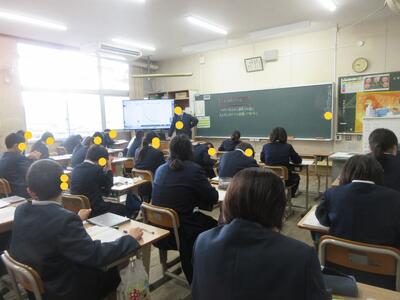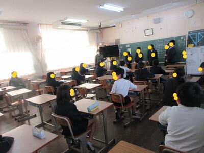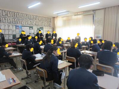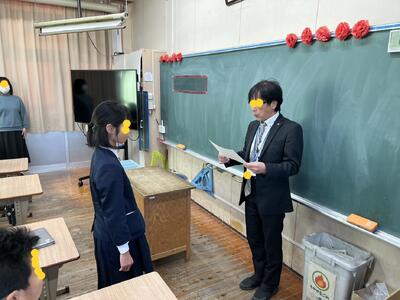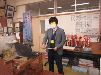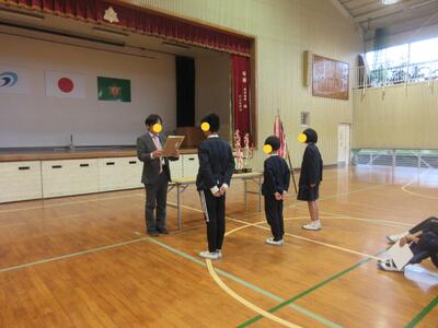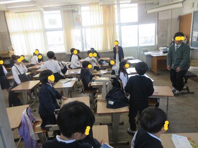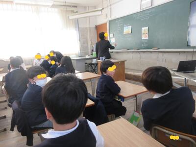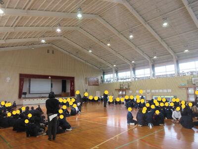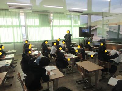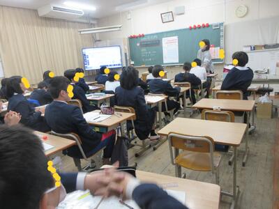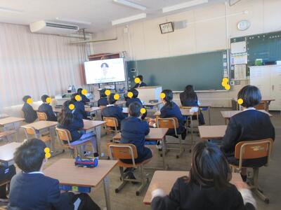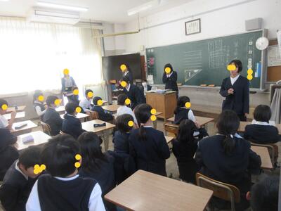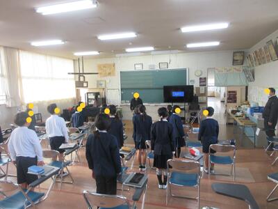 生徒指導担当のO先生から「冬休みのくらし」、保健のT先生から「冬休みの健康」について話がありました。