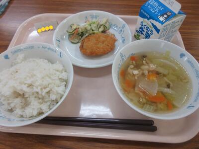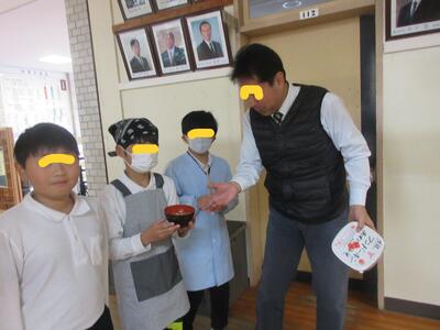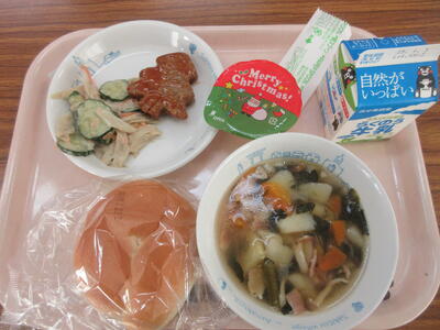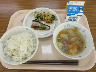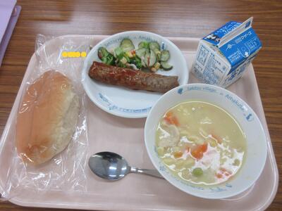 昼に学校に戻りました。今日もおいしい給食、ありがとうございました。天草大王のスープでした。