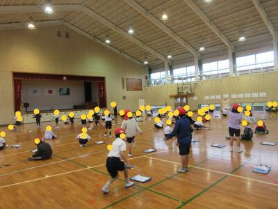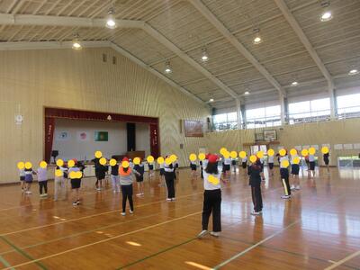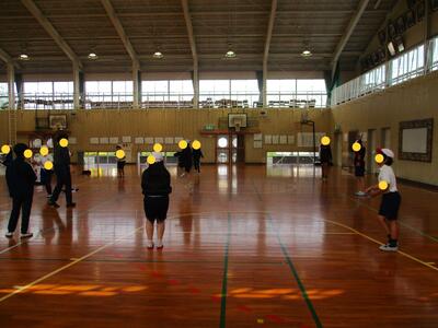 体育館には、教室では収納できない、人数の多い地区が3つ集まっています。