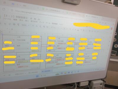 ④スプレッドシートで、役割分担、選択した実験、進捗状況等が一目瞭然となっています。