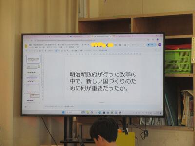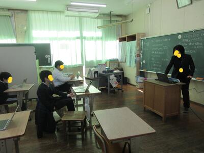 リモートの良さは、教室で黒板を使って、平行して大切な話を文字化、見える化できることです。