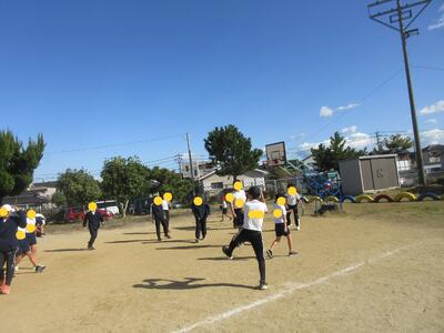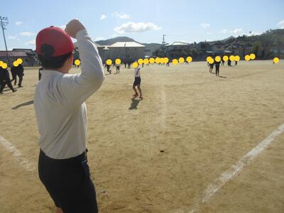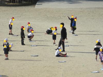 4年体育、走ります。