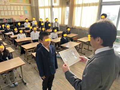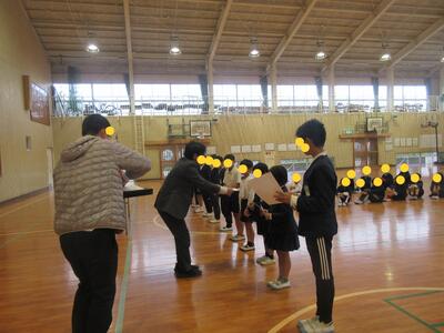 朝は3年生と4年生、そして1年生1クラスのダブルパーフェクト賞の表彰式でした。