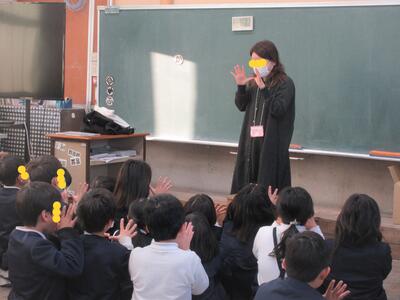 4年体育、私に気づいた子が小さなリアクションをしてくれました。