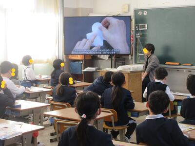 2年保健、手を洗わないとどうやら大変なことになりますね。