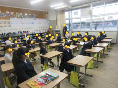 安全な移動のため、放送の指示により低学年から移動を始めます。