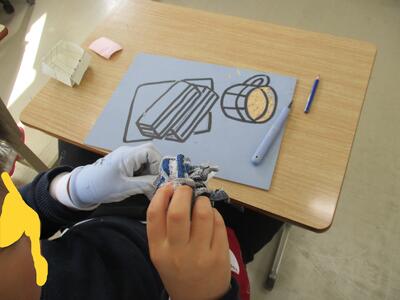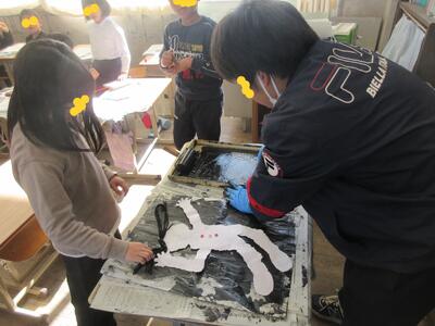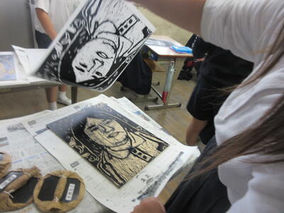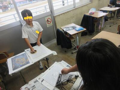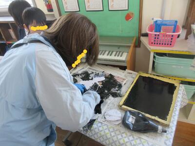 2年図工、紙版画、印刷します。
