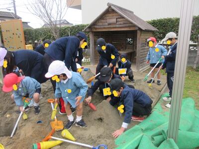 今からチューリップを植えに行くと教えてくれました。